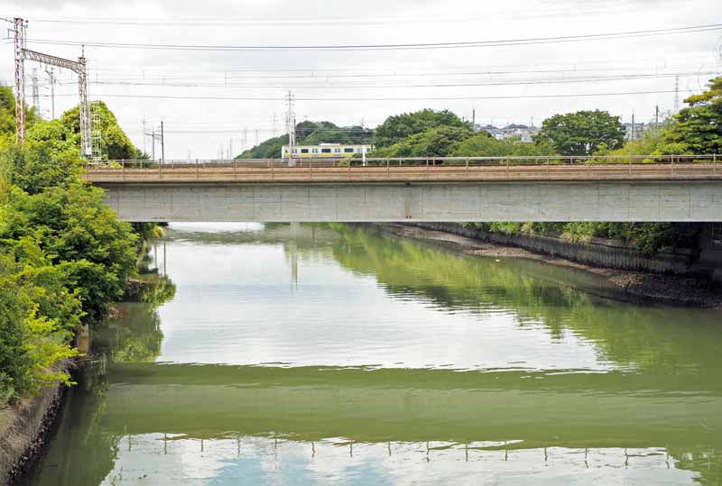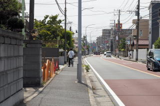 | ■検見川町2丁目~花園橋 検見川陸橋をくぐった先、左へ入る細道を行くと、「大坂」と呼ばれる坂道で、左手に●庚申塔、地蔵尊、子安観音などが並びます。 街道に戻って、●東関東自動車道の下をくぐリます。 少し、国道4号(千葉街道)に沿って進み、歩道橋手前の左へ入る分岐を、左へ入って行くのが旧道で、「花園橋」へ出ます。 右手の歩道橋を上がって、左斜め前方を見ると、変わった屋根の建物が見えます。●旧千葉市庁舎で、現在は千葉トヨペットの建物になります。近くまで行こうと思ったが、暑くて面倒なので、雰囲気だけ味わいました。 ストリートビューで見ると"こんな感じ "です。 13:27 |
