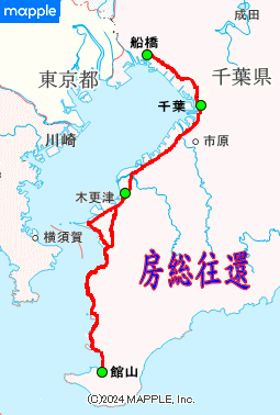 | 房総往還 ⅠⅡ 房総往還は千葉県船橋市から館山市まで通じる街道で、房総半島西側を通って江戸に通じる主要な交通路でした。房総諸藩に取っては参勤交代路でもあり、近世では外国船に対する江戸内湾の警護のために重要な役割を果たしてきた。木更津までは平坦の道が通じるが、木更津から山側、海側の道に分かれ、山側の道の方が古いが、海防政策の進展により、海側の交通量が増えてきた。今回は海側を通ります。 距離115km程度 資料 「歴史の道調査報告書 房総往還 ⅠⅡ」 千葉県教育委員会 |